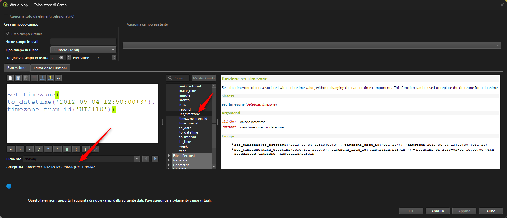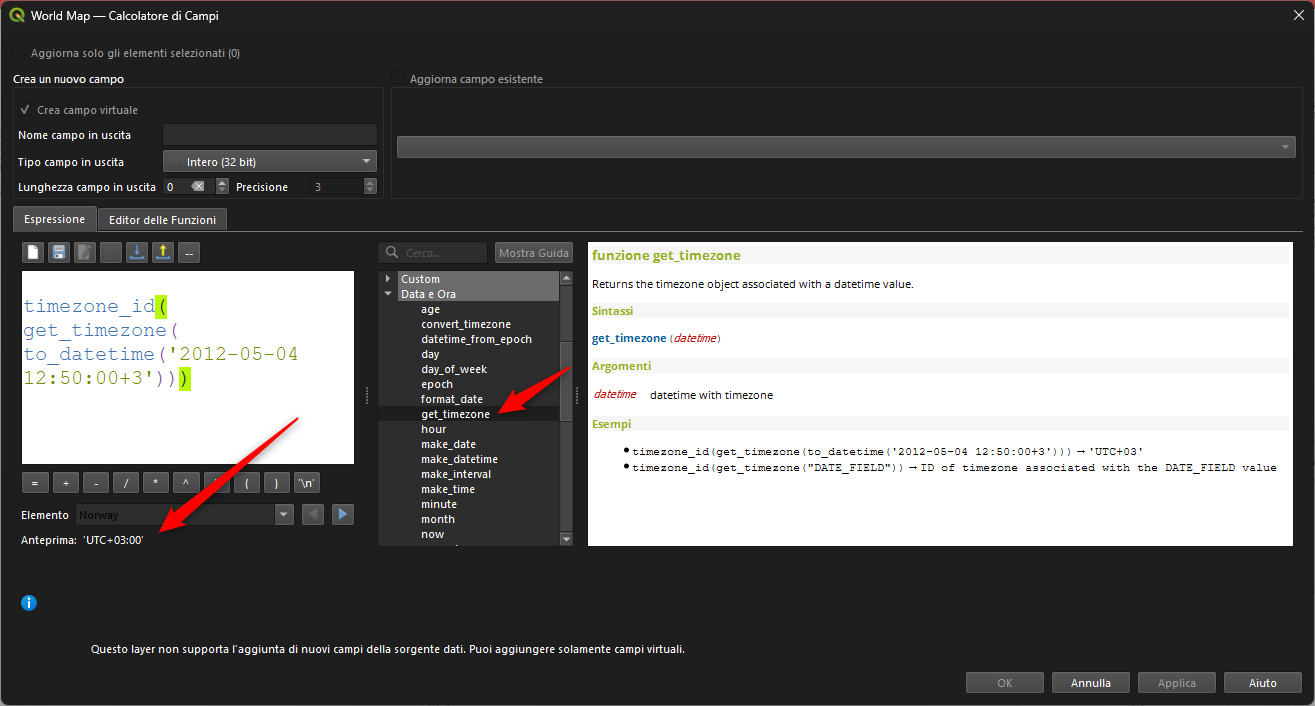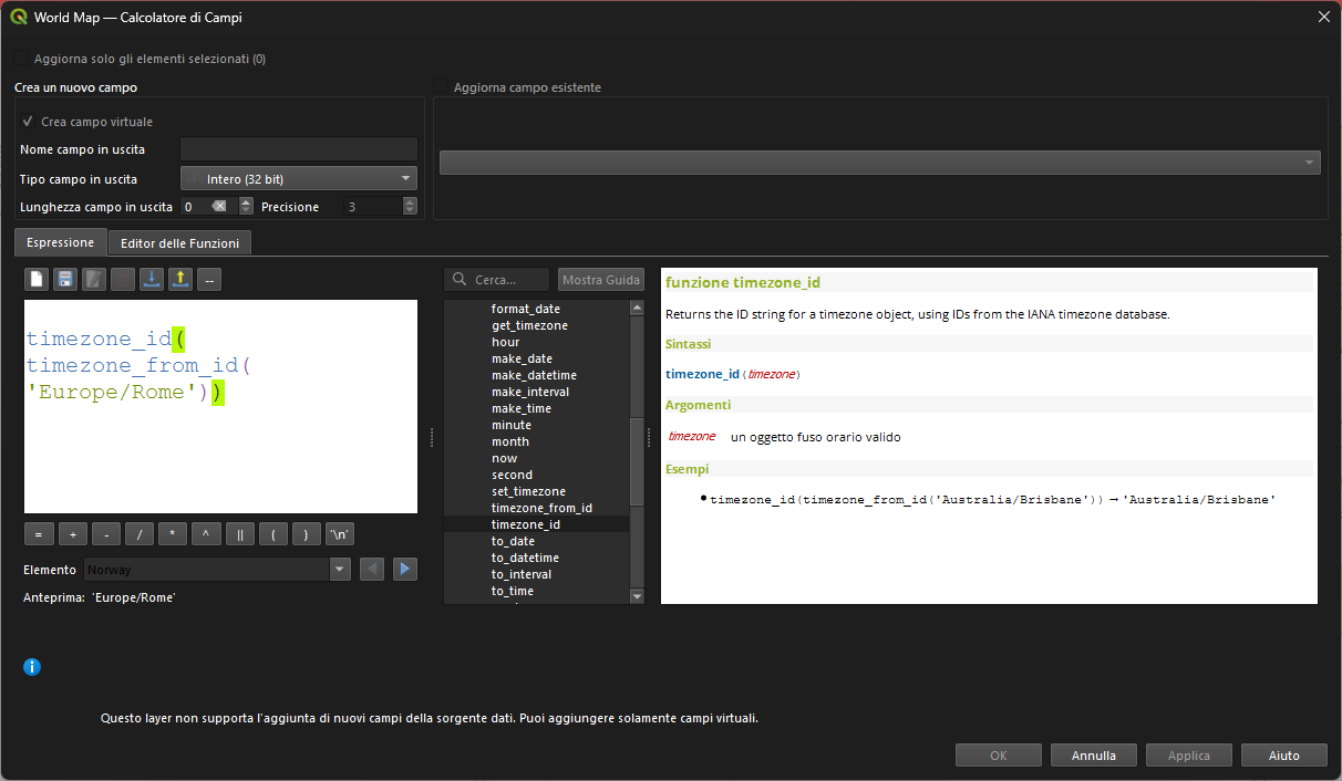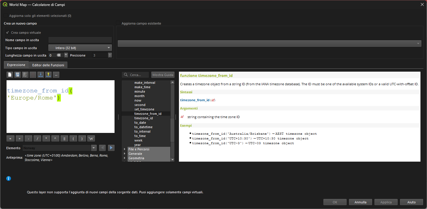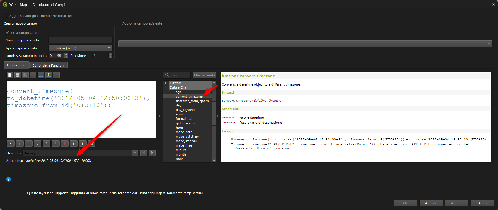 convert_timezone("DATE_FIELD", timezone_from_id('Australia/Darwin')) → datetime del campo DATE_FIELD convertito nel fuso orario 'Australia/Darwin'